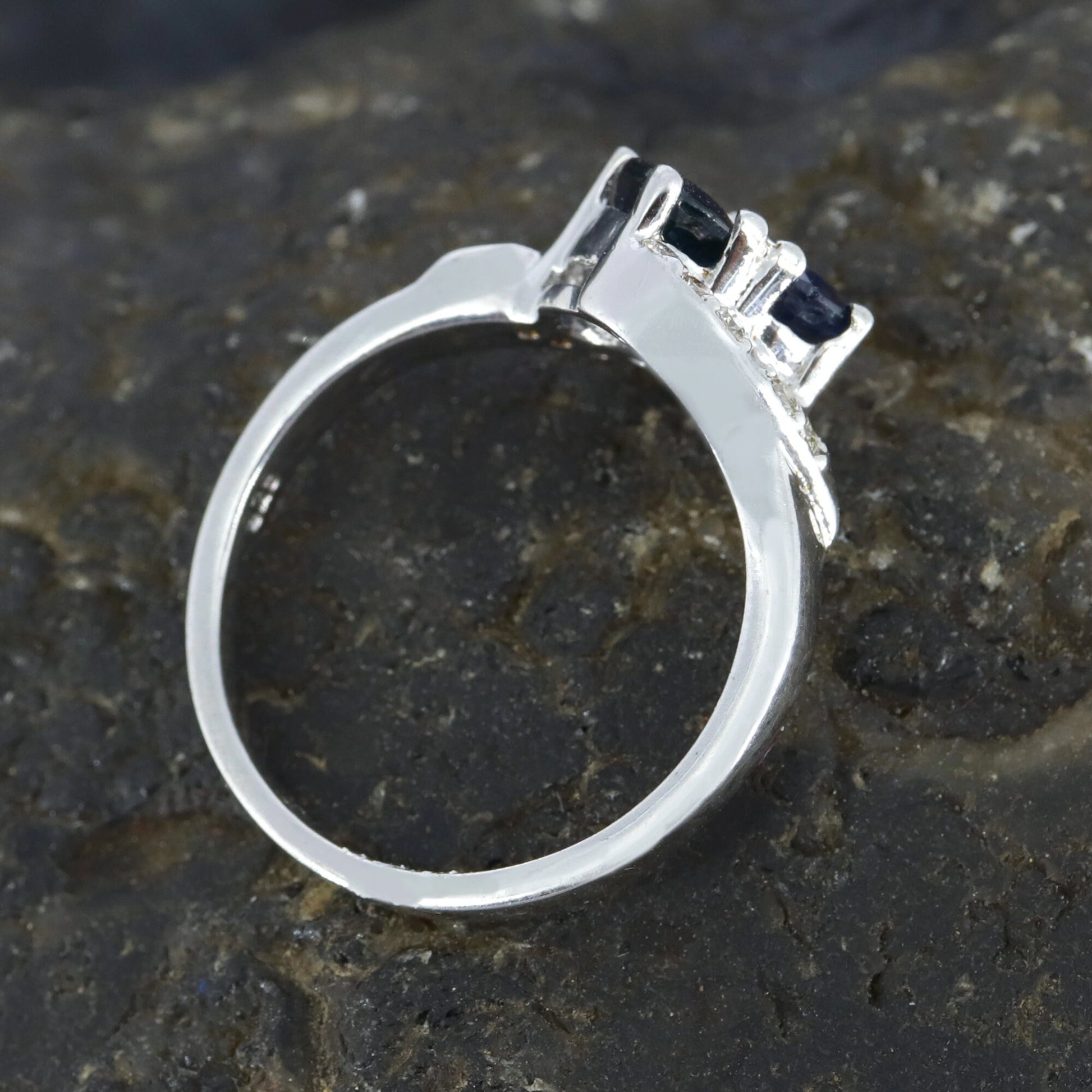 Add this beautiful Blue Sapphire & Diamond Silver Ring to your jewellery collection. This Ring can be worn as a single one, or as stacks.