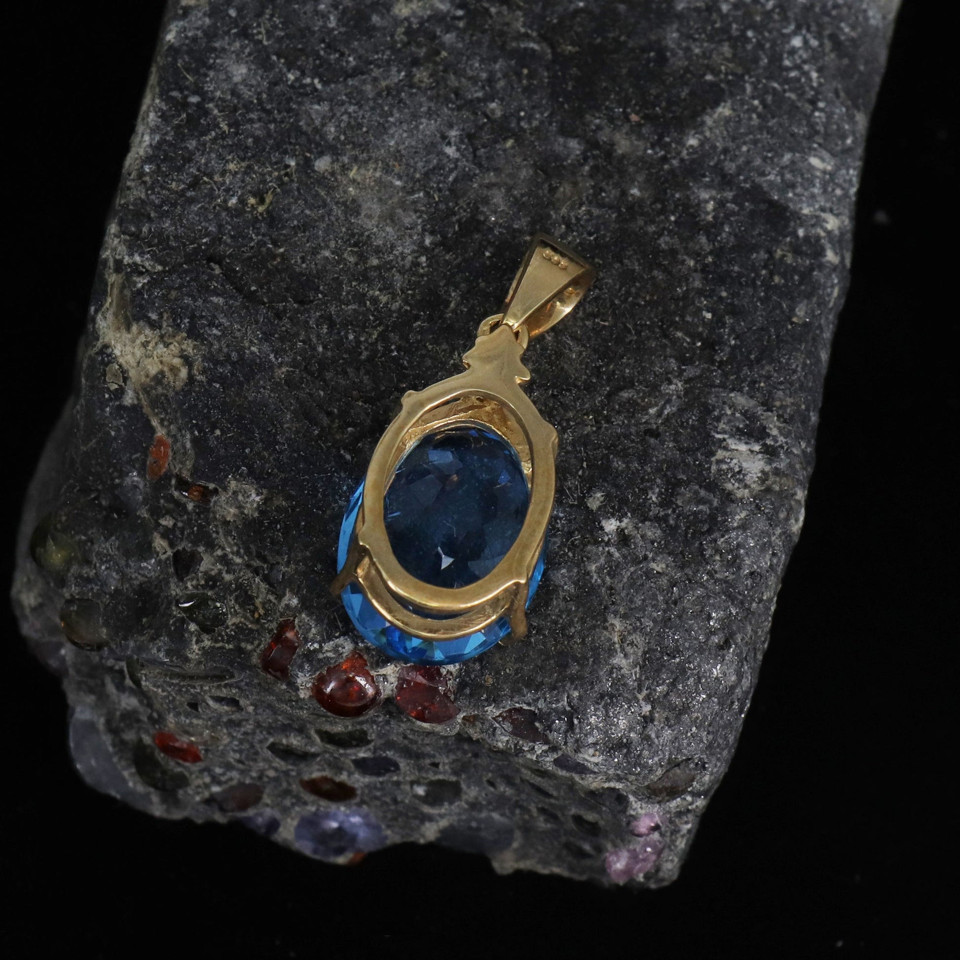 Dark Blue Topaz Necklace 14K Gold