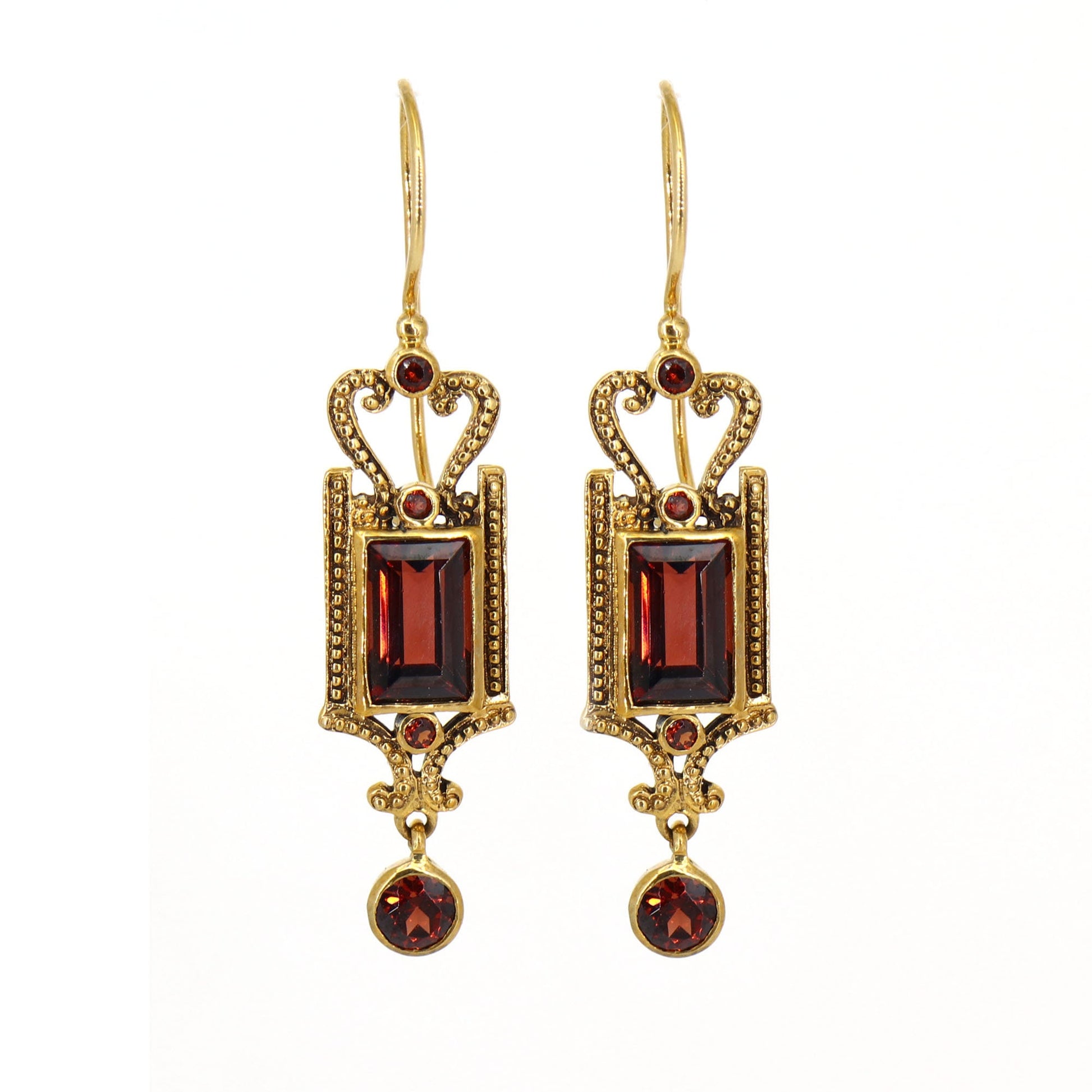 Garnet Earring in 9k Solid Yellow Gold, Dangling Gold Garnet Earrings, One of a kind Earrings For Her, Multi cut garnet earrings, garnet earrings, gold filigree earrings for her, wedding for her, anniversary for her, birthday for her, valentine for her, earrings for her, 9k yellow gold earrings, 9K Yellow Gold Garnet Earrings For Her
