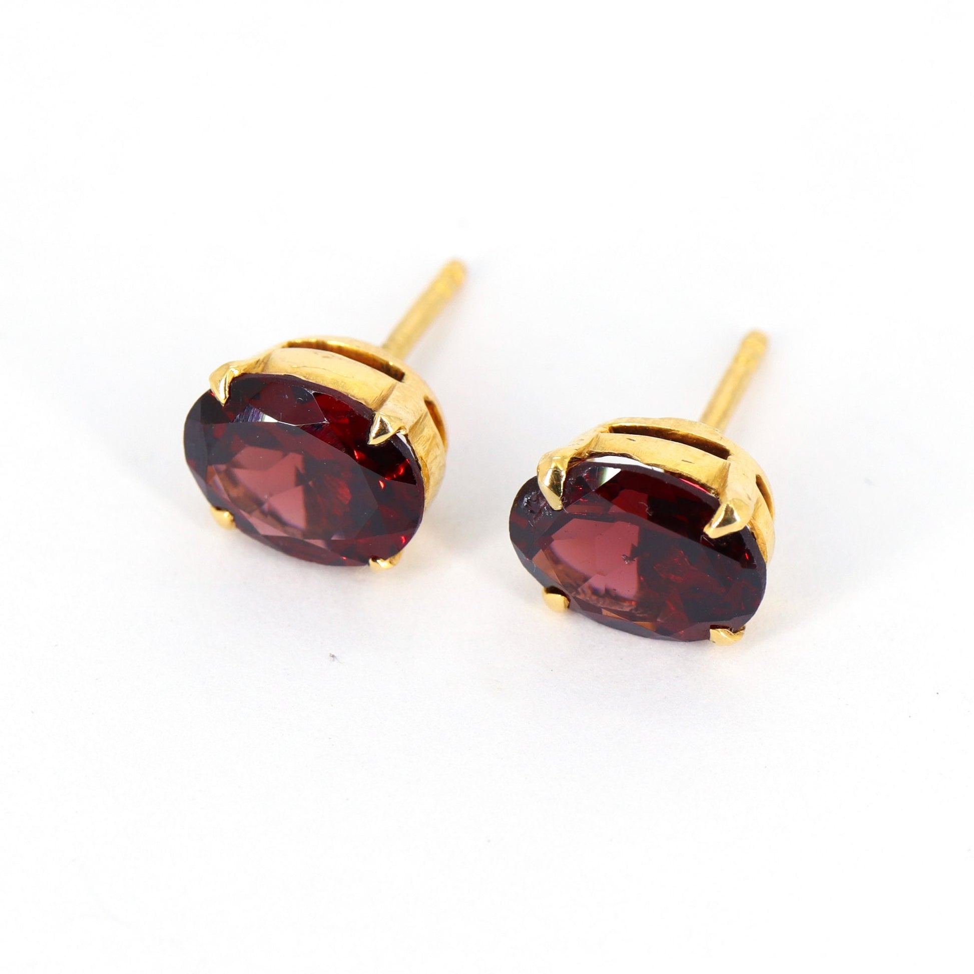 Garnet Gemstone Studs, 18K Solid Yellow Gold Earrings, January Birthstone Garnet Studs, Minimalist Gold Studs, Oval Cut Gemstone Studs For