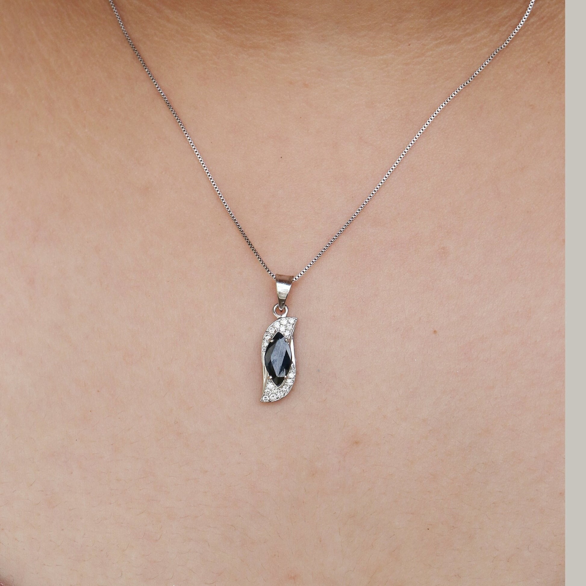 Marquise cut Stone, Wedding , Natural Blue Sapphire Pendant, Leaf Shape Pendant, Diamond Necklace, 18k White Gold, September Birthstone