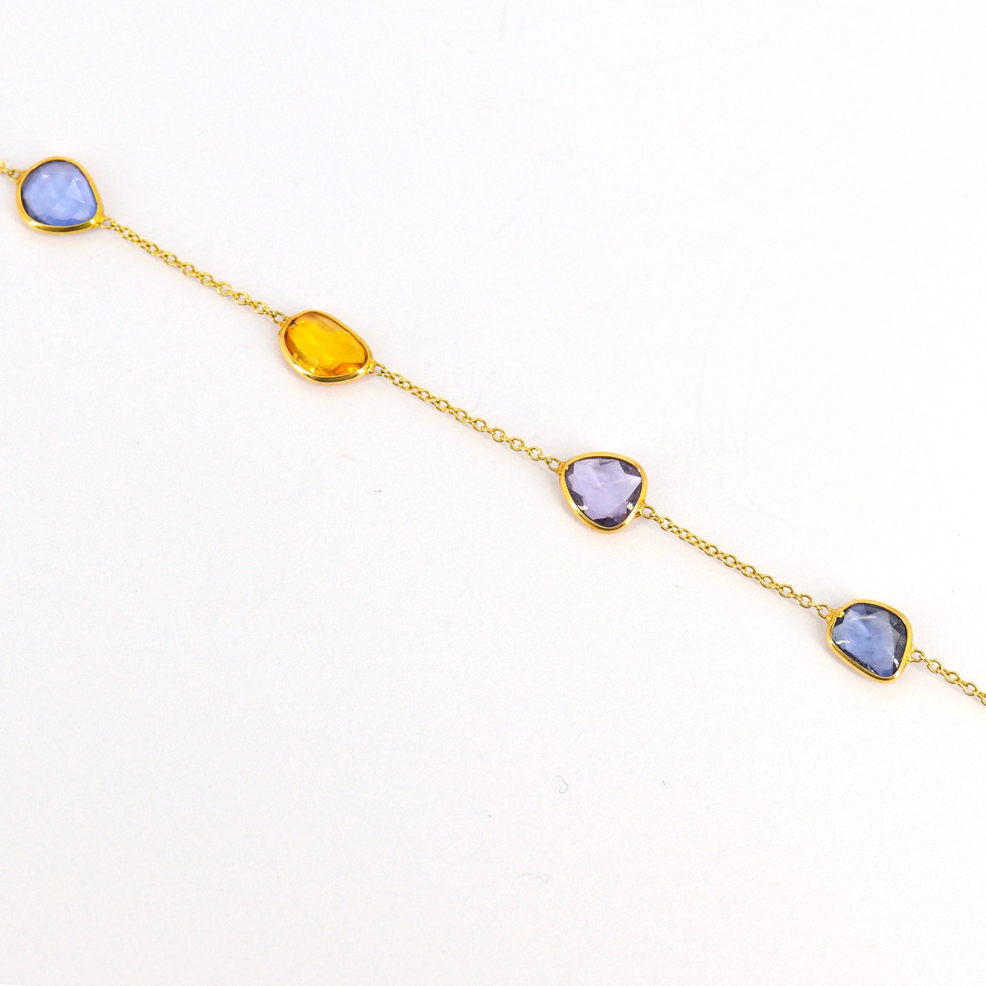 Multi Sapphire Bracelet, 18k Solid Yellow Gold Bracelet, Tiny Bracelet With Chain, Rose Cut Slices, Special , Sapphire Bracelets