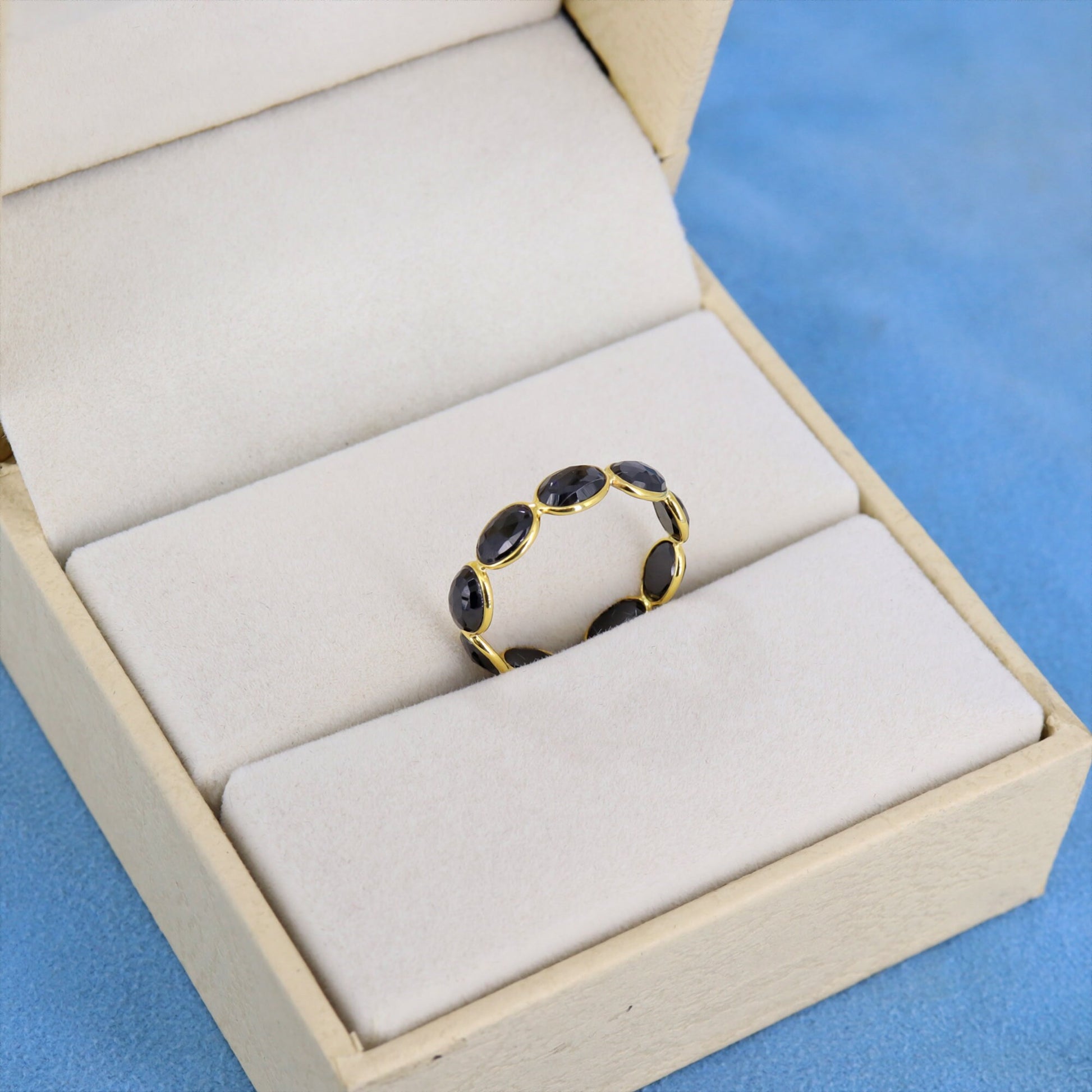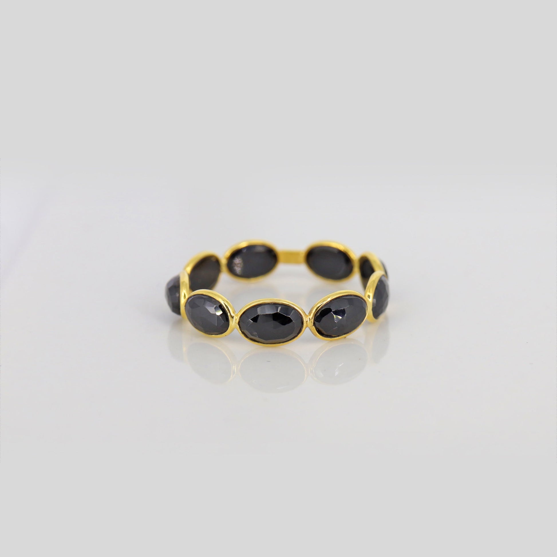 Natural Black Spinel Ring- Tiny Band Ring- Gold Eternity Ring- Black Spinel Stacking Ring- Birthstone Band Ring- 18k Gold Wedding band