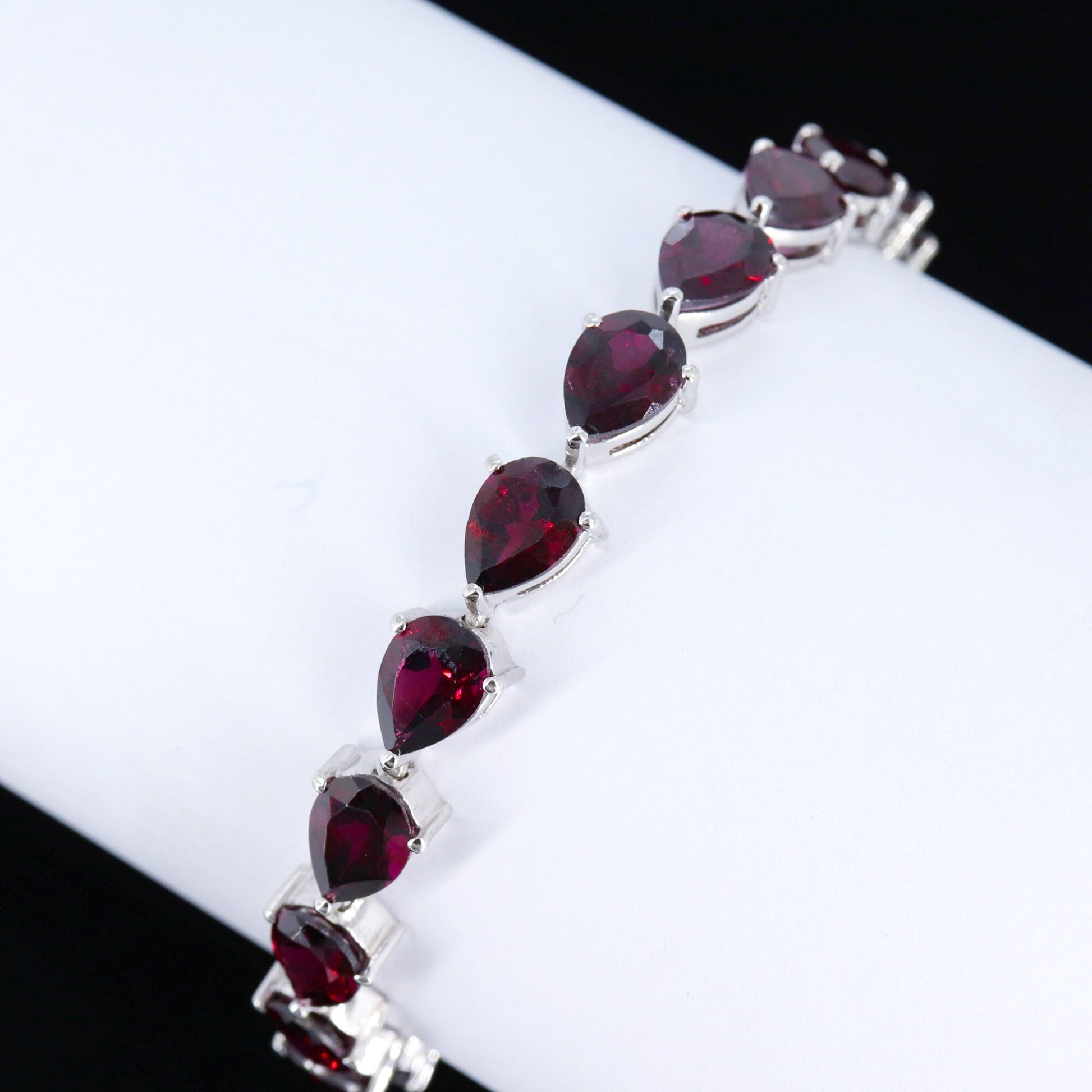 Natural Garnet Bracelet, 925 Sterling Silver Bracelet, Dainty Wristband, Pear Cut Stone, January Birthstone Bracelet, Christmas For Her
