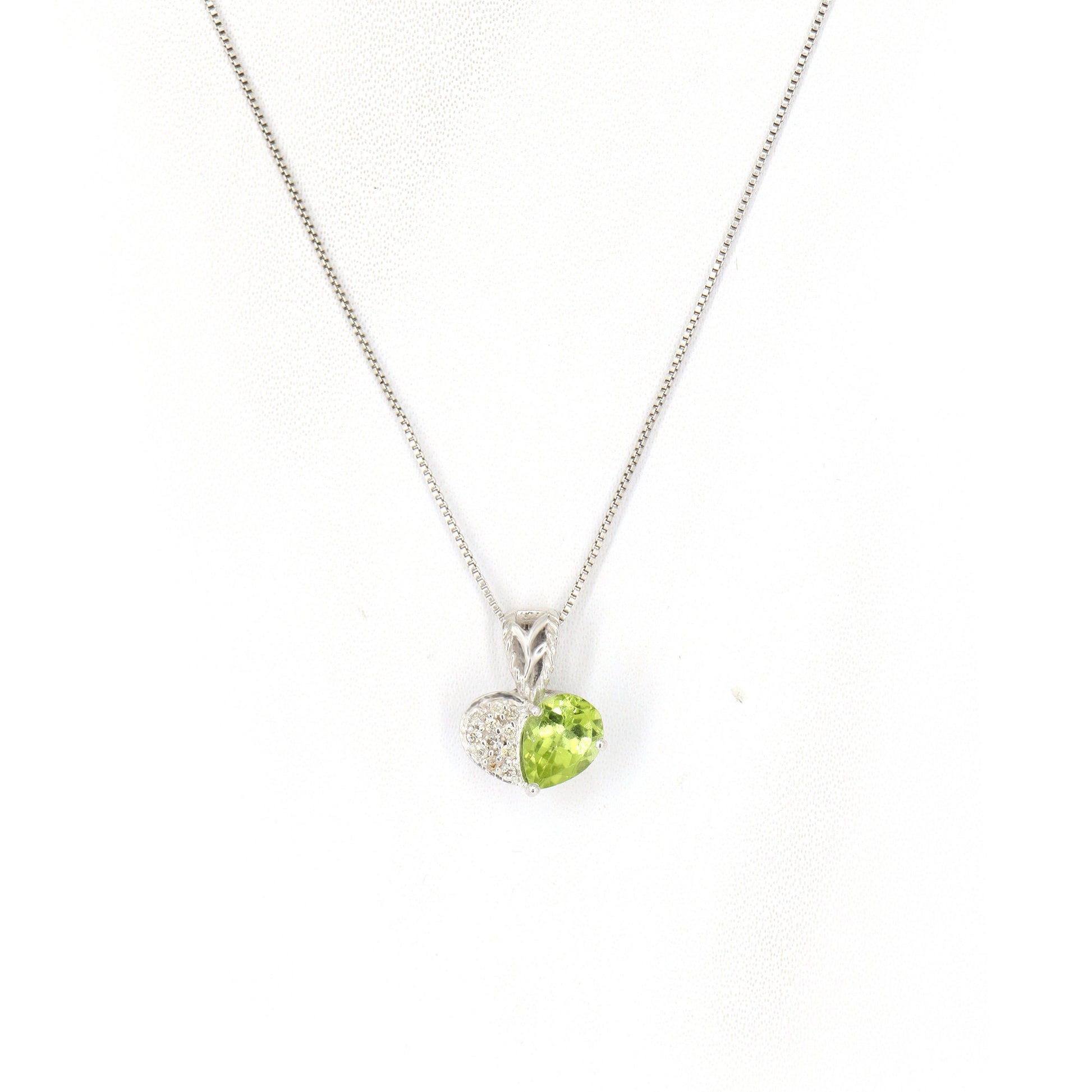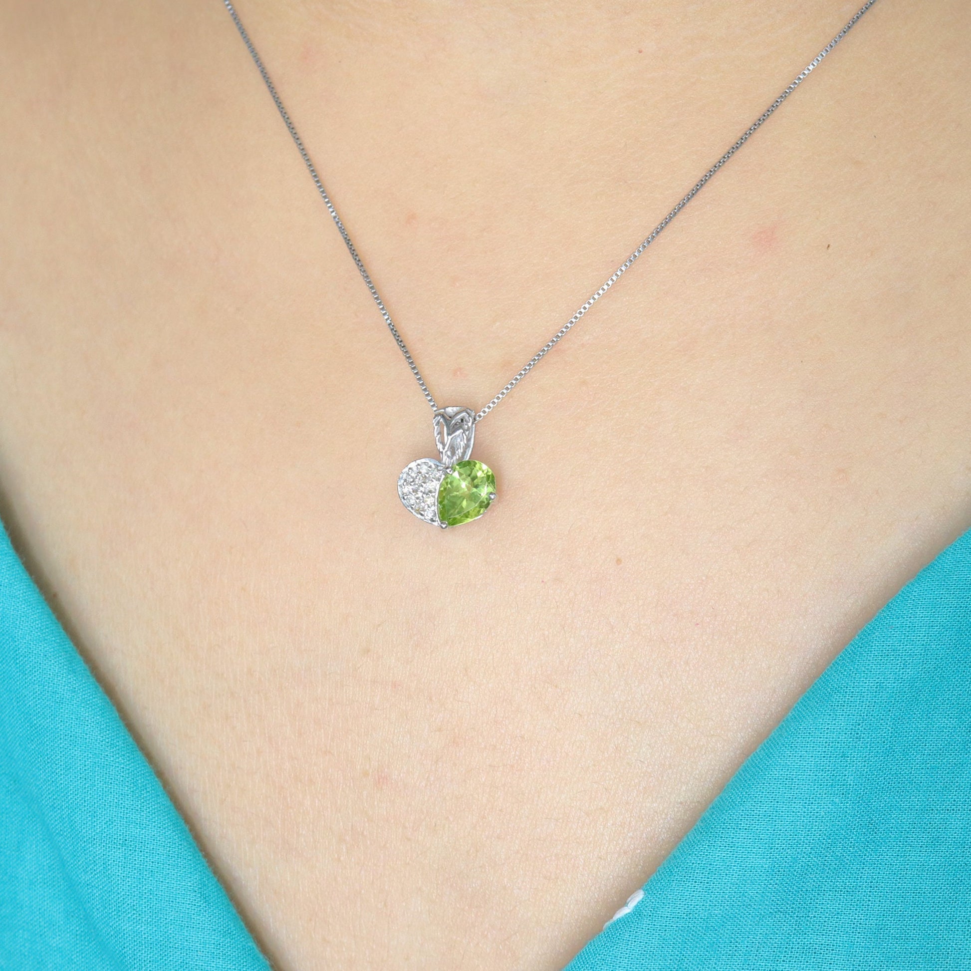 Peridot Pendant, Heart Shaped Peridot Diamond Pendant, August Birthstone Pendant, Lime Green Stone, Heart Necklace For Her in 14k White Gold