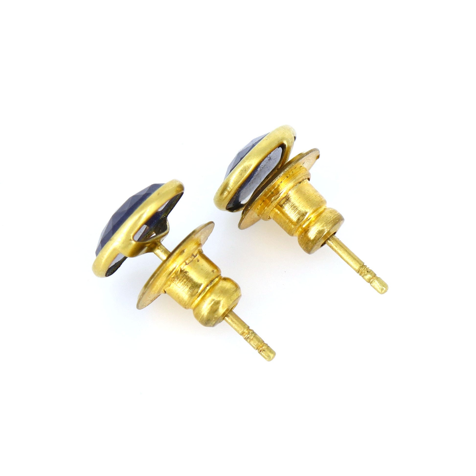 Rose Cut Blue Sapphire Earrings, Nice Dark Blue Sapphire in 18K Solid Yellow Gold, Oval Cut Sapphire, Dainty Studs, Sapphire earrings for her, gold earrings for her, valentine for her, valentine earrings for her, prom night for her, wedding for her, anniversary for her, birthday for her, indian jewelry, handmade indian jewelry