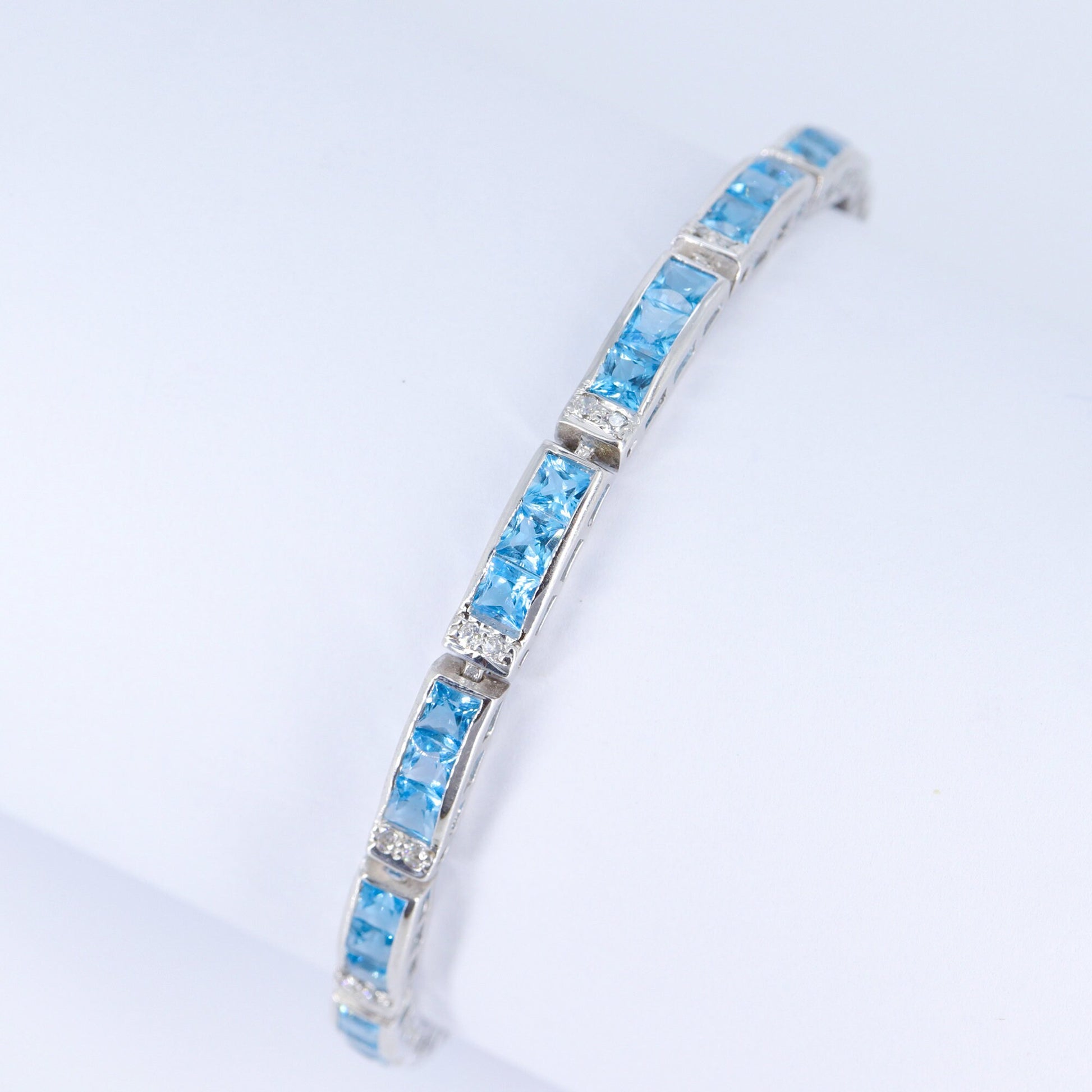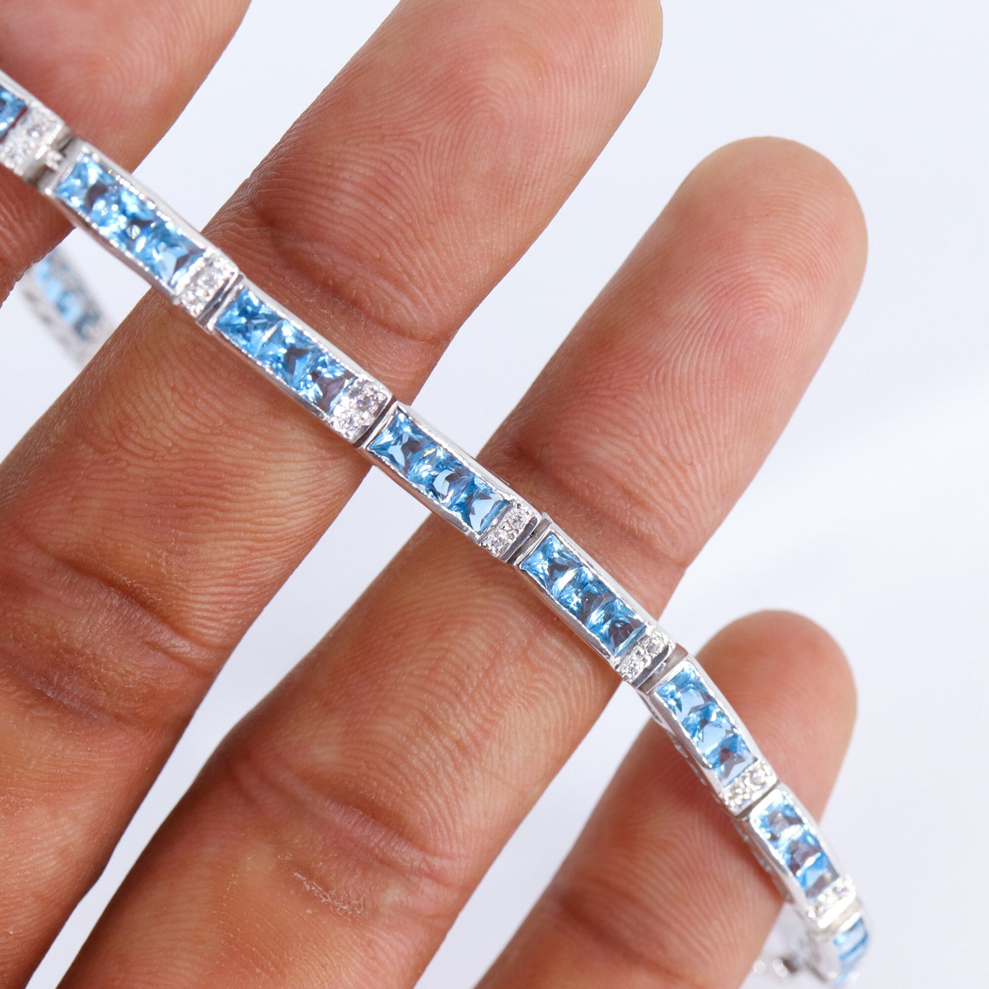 Swiss Blue Topaz & Cubic Zircon Bracelet For Women, Sterling Silver Blue Topaz Bracelet, For Women, Stone Bracelet, Anniversary