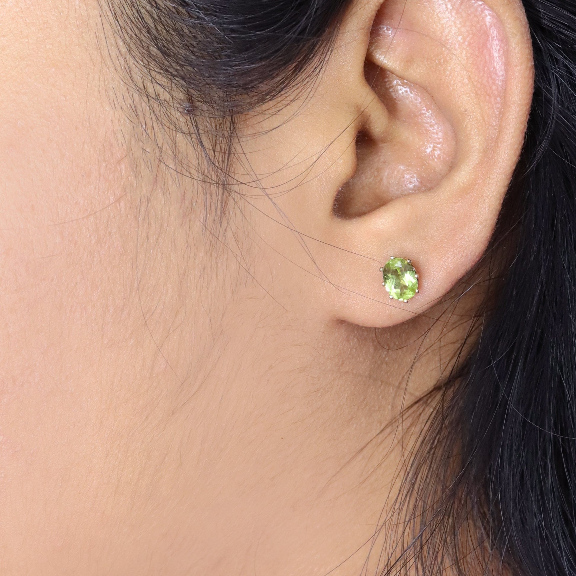Tiny Oval Cut Green Peridot Gemstone Studs 9K Yellow Peridot Earring Gold