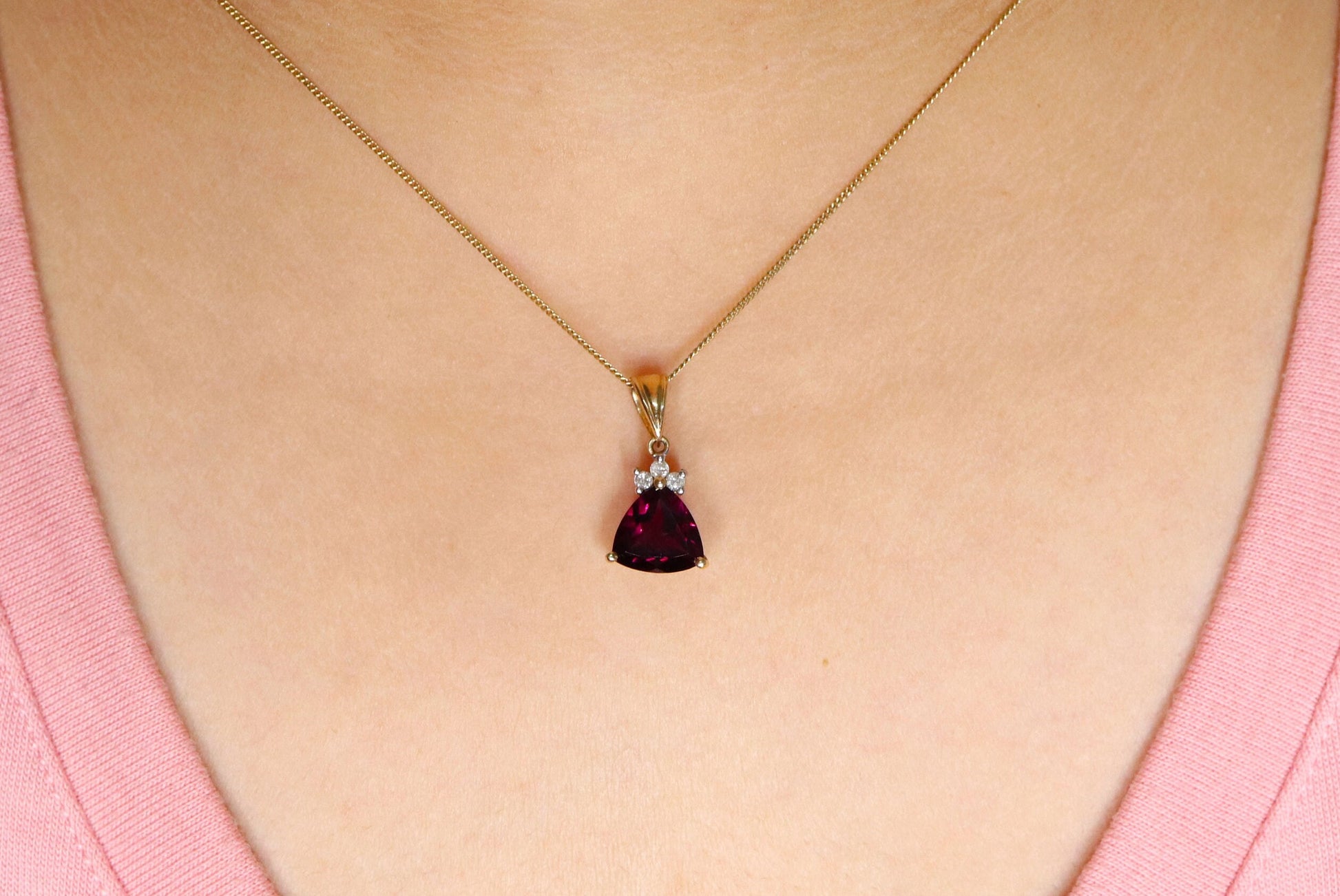 Trillion Cut Garnet Pendant 14K Gold